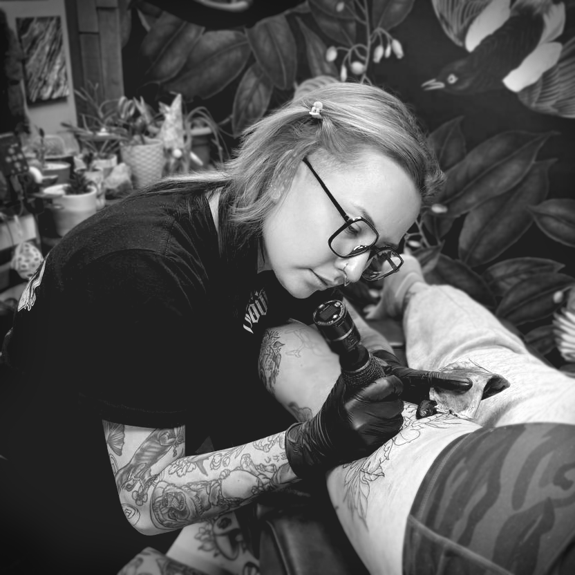 I have been drawing my whole life — mainly digitally since the age of 14. This passion helped lead me to a 12+ year long career in Web and Graphic Design prior to my switch to tattooing.